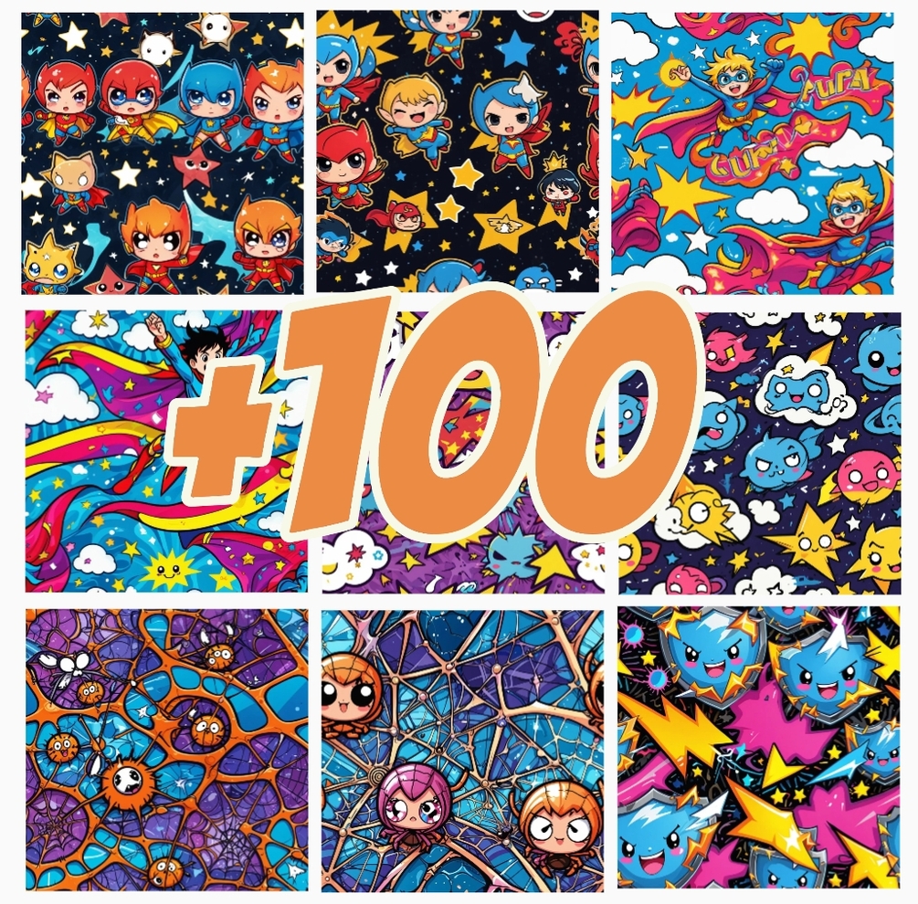 100+ Superhero-Inspired Digital Pattern | Seamless Cartoon Design for Crafts, DIY, and Printables